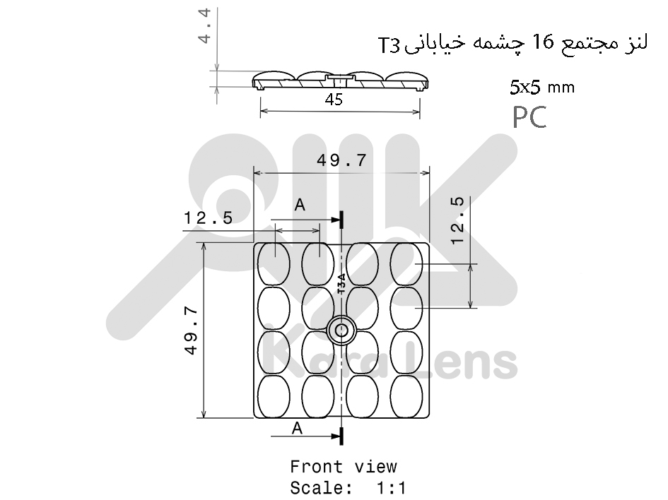 لنز مجتمه 5×5 بلوکی 16 وات (چشمه) ، خیابانی تایپ 3